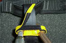 Um die volle Haltekraft der Kletterverschlüsse zu erreichen, müssen Flausch- und Hakenband sauber und 100% deckend (in Breite und Länge) gegeneinander angebracht sein.