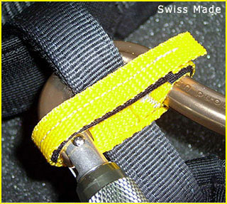 Positioniert den Karabiner, kein Verdrehen an der Sicherungsschlaufe.
